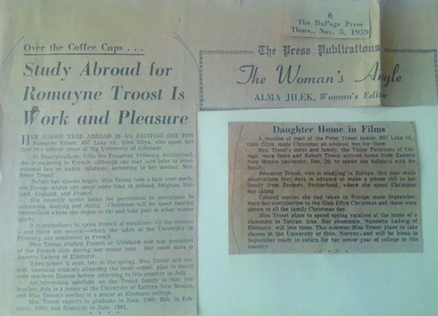 Having just finished reading Bill Clinton’s book wherein he says that everyone has a story, I realize I too have a story. The story I am going to tell you is the year that changed my life. It is the year I can recount to you because my father saved all the letters I wrote home from my year studying abroad in Switzerland and Norway. My father was a hard working successful businessman and not the type to show much emotion over the normal events of my life but these letters touched him. After I returned home his friends would relate to me the events that I had experienced in Europe as told to them by my father. When he died my letters were found in his safety deposit box.
